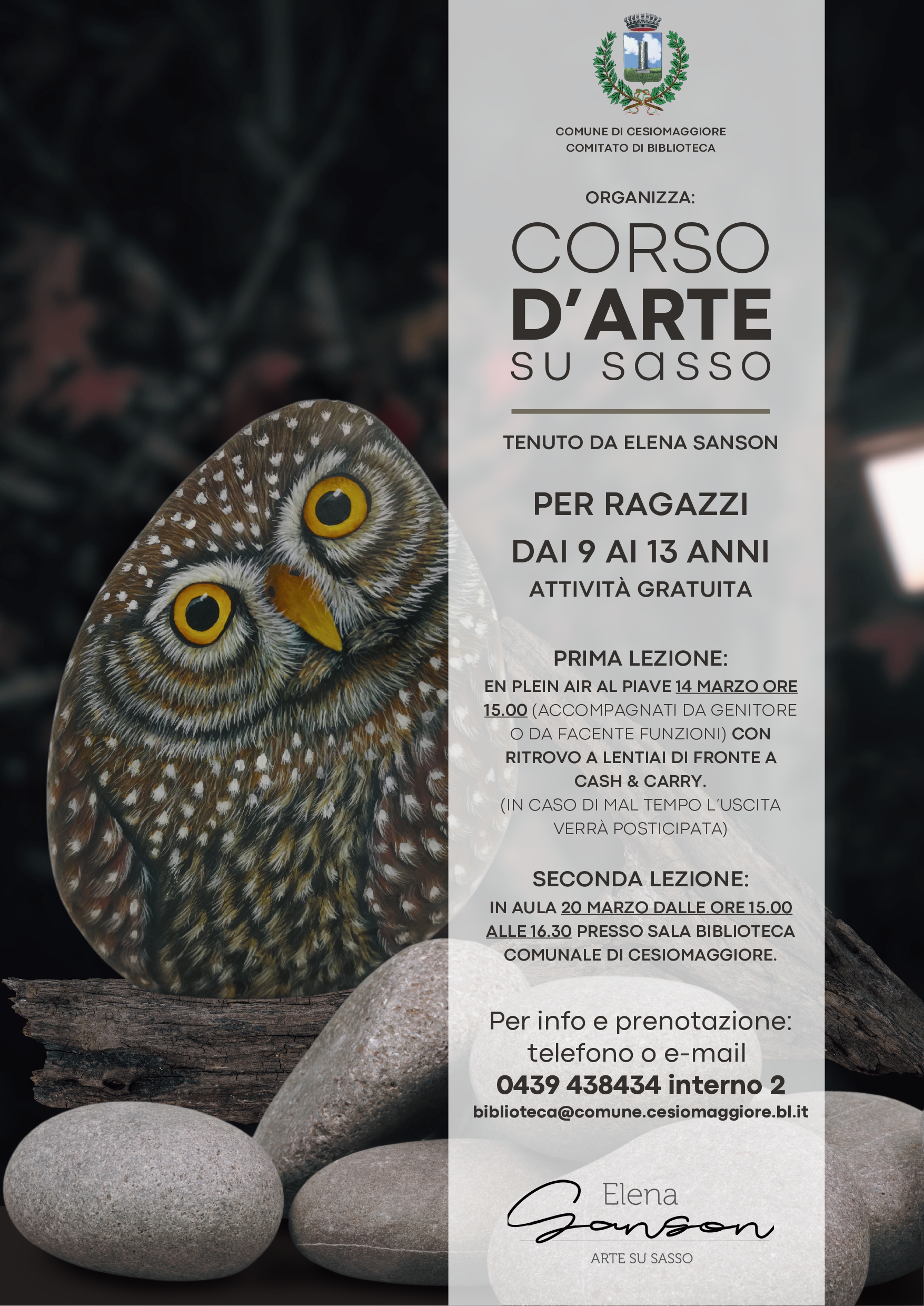 Per info e prenotazioni 0439 438434 interno 2 e-mail: biblioteca@comune.cesiomaggiore.bl.it